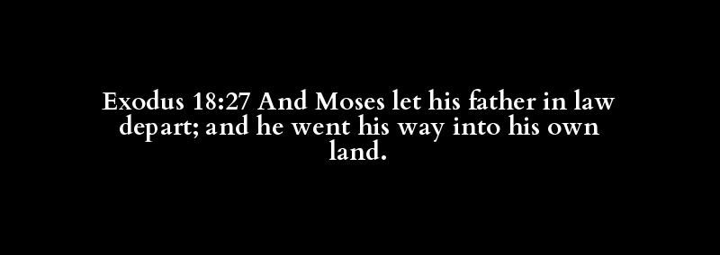 Exodus 18:27 And Moses let his father in law depart; and he went his way into his own land.