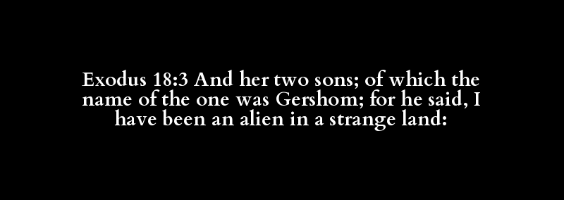 Exodus 18:3 And her two sons; of which the name of the one was Gershom; for he said, I have been an alien in a strange land: