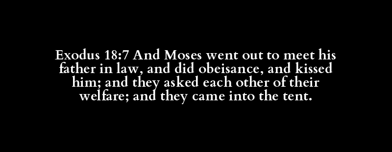 Exodus 18:7 And Moses went out to meet his father in law, and did obeisance, and kissed him; and they asked each other of their welfare; and they came into the tent.