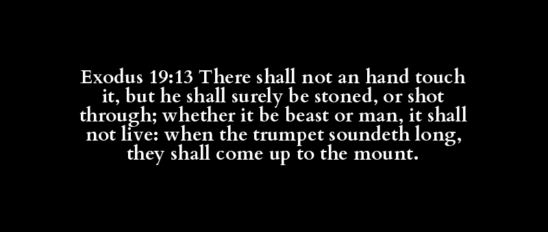 Exodus 19:13 There shall not an hand touch it, but he shall surely be stoned, or shot through; whether it be beast or man, it shall not live: when the trumpet soundeth long, they shall come up to the mount.