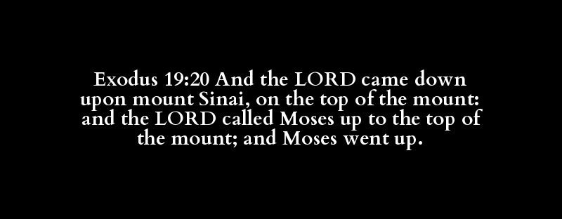 Exodus 19:20 And the LORD came down upon mount Sinai, on the top of the mount: and the LORD called Moses up to the top of the mount; and Moses went up.