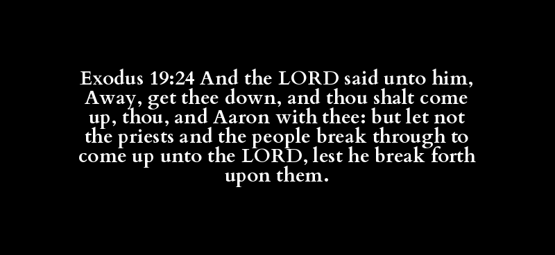 Exodus 19:24 And the LORD said unto him, Away, get thee down, and thou shalt come up, thou, and Aaron with thee: but let not the priests and the people break through to come up unto the LORD, lest he break forth upon them.