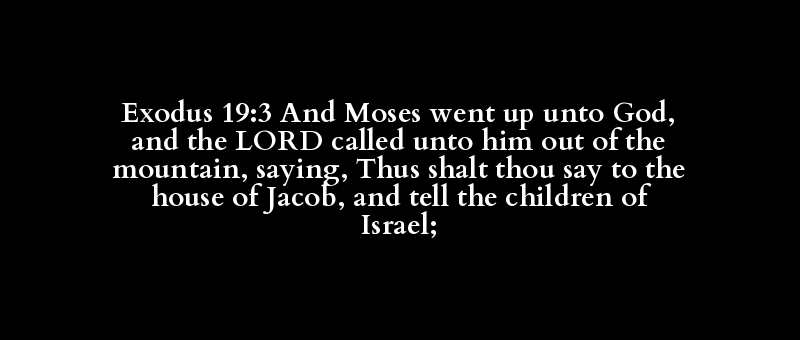 Exodus 19:3 And Moses went up unto God, and the LORD called unto him out of the mountain, saying, Thus shalt thou say to the house of Jacob, and tell the children of Israel;