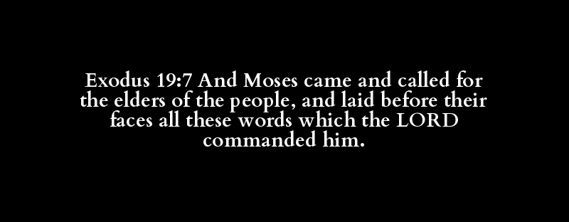 Exodus 19:7 And Moses came and called for the elders of the people, and laid before their faces all these words which the LORD commanded him.