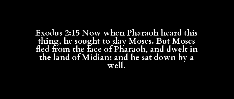 Exodus 2:15 Now when Pharaoh heard this thing, he sought to slay Moses. But Moses fled from the face of Pharaoh, and dwelt in the land of Midian: and he sat down by a well.