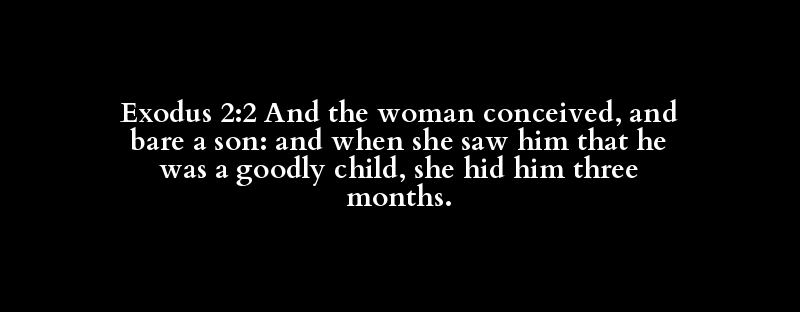 Exodus 2:2 And the woman conceived, and bare a son: and when she saw him that he was a goodly child, she hid him three months.