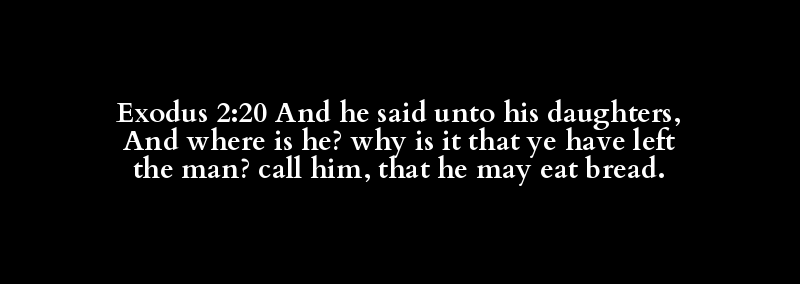 Exodus 2:20 And he said unto his daughters, And where is he? why is it that ye have left the man? call him, that he may eat bread.