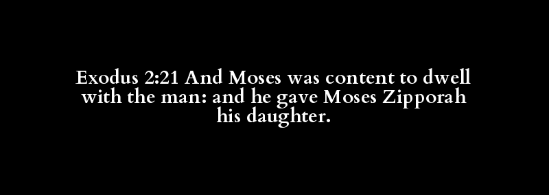 Exodus 2:21 And Moses was content to dwell with the man: and he gave Moses Zipporah his daughter.