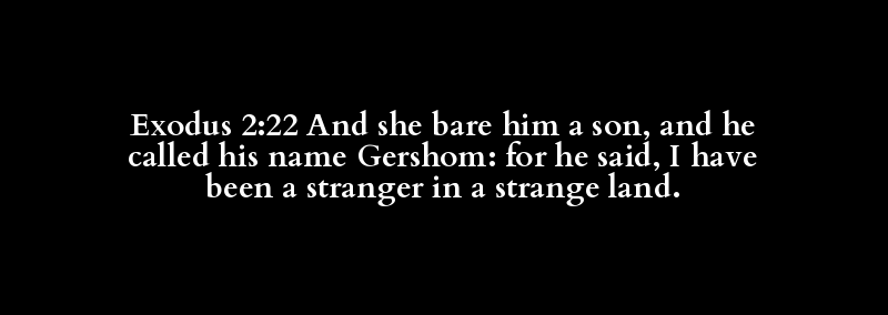 Exodus 2:22 And she bare him a son, and he called his name Gershom: for he said, I have been a stranger in a strange land.