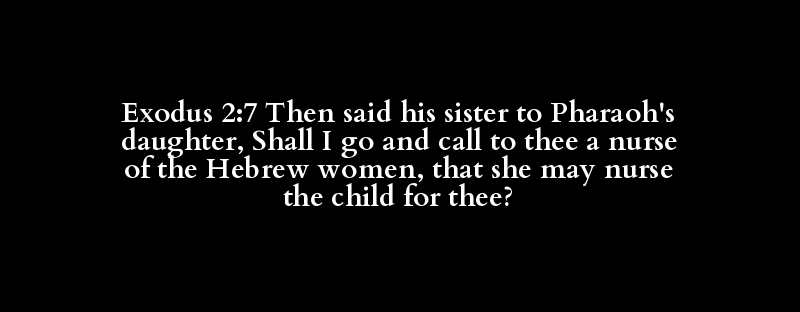 Exodus 2:7 Then said his sister to Pharaoh's daughter, Shall I go and call to thee a nurse of the Hebrew women, that she may nurse the child for thee?