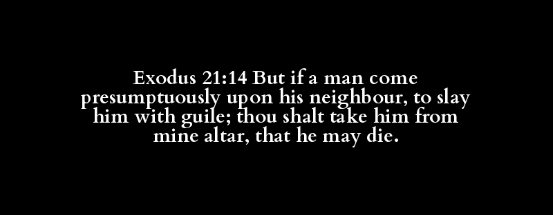 Exodus 21:14 But if a man come presumptuously upon his neighbour, to slay him with guile; thou shalt take him from mine altar, that he may die.