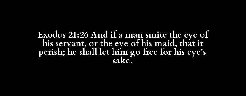 Exodus 21:26 And if a man smite the eye of his servant, or the eye of his maid, that it perish; he shall let him go free for his eye's sake.