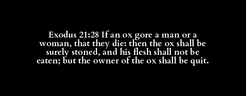 | שׁוֹר | נָגַח | אִישׁ | אִשָּׁה | מוּת | שׁוֹר | סָקַל | סָקַל | בָּשָׂר | אָכַל | בַּעַל | שׁוֹר | נָקִי |
