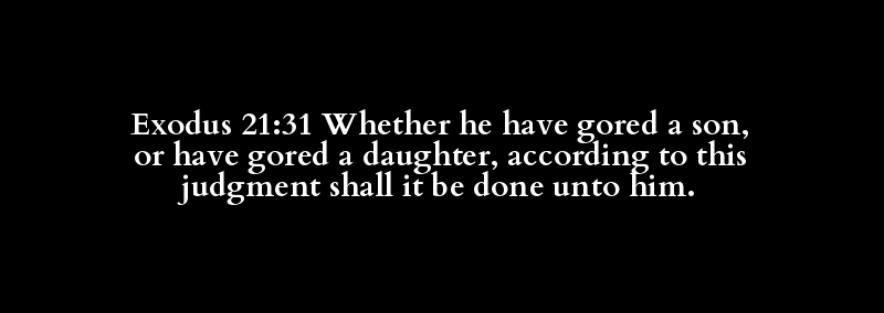 Exodus 21:31 Whether he have gored a son, or have gored a daughter, according to this judgment shall it be done unto him.