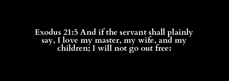 Exodus 21:5 And if the servant shall plainly say, I love my master, my wife, and my children; I will not go out free: