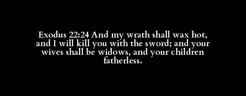 Exodus 22:24 And my wrath shall wax hot, and I will kill you with the sword; and your wives shall be widows, and your children fatherless.