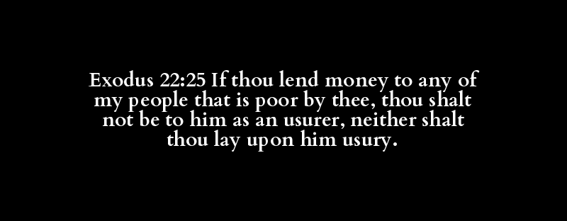 Exodus 22:25 If thou lend money to any of my people that is poor by thee, thou shalt not be to him as an usurer, neither shalt thou lay upon him usury.