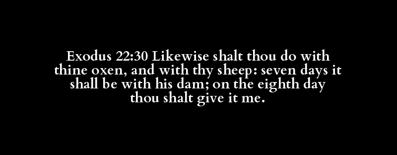 Exodus 22:30 Likewise shalt thou do with thine oxen, and with thy sheep: seven days it shall be with his dam; on the eighth day thou shalt give it me.