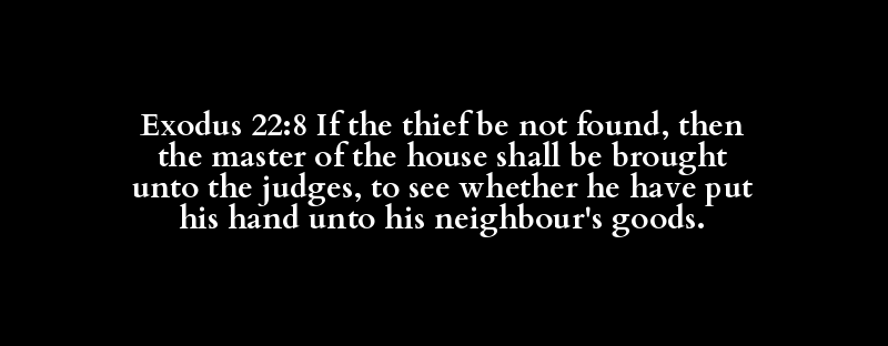 Exodus 22:8 If the thief be not found, then the master of the house shall be brought unto the judges, to see whether he have put his hand unto his neighbour's goods.