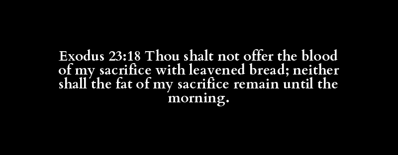 Exodus 23:18 Thou shalt not offer the blood of my sacrifice with leavened bread; neither shall the fat of my sacrifice remain until the morning.