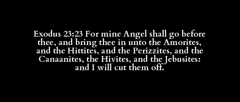 Exodus 23:23 For mine Angel shall go before thee, and bring thee in unto the Amorites, and the Hittites, and the Perizzites, and the Canaanites, the Hivites, and the Jebusites: and I will cut them off.