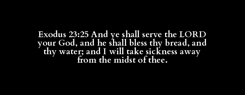 Exodus 23:25 And ye shall serve the LORD your God, and he shall bless thy bread, and thy water; and I will take sickness away from the midst of thee.