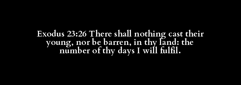 Exodus 23:26 There shall nothing cast their young, nor be barren, in thy land: the number of thy days I will fulfil.