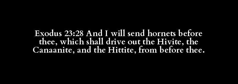 Exodus 23:28 And I will send hornets before thee, which shall drive out the Hivite, the Canaanite, and the Hittite, from before thee.