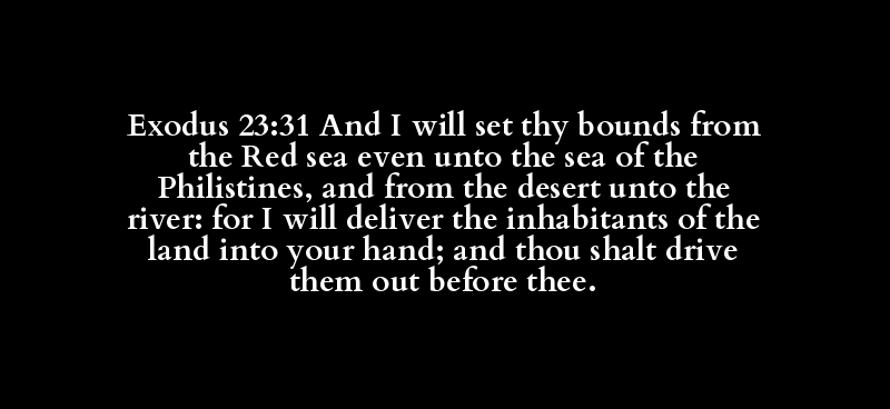 Exodus 23:31 And I will set thy bounds from the Red sea even unto the sea of the Philistines, and from the desert unto the river: for I will deliver the inhabitants of the land into your hand; and thou shalt drive them out before thee.