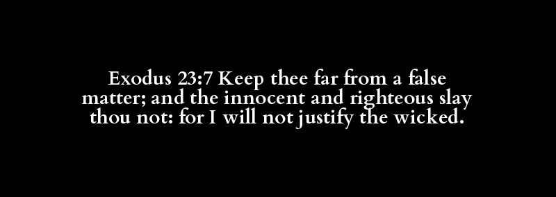 Exodus 23:7 Keep thee far from a false matter; and the innocent and righteous slay thou not: for I will not justify the wicked.