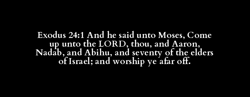Exodus 24:1 And he said unto Moses, Come up unto the LORD, thou, and Aaron, Nadab, and Abihu, and seventy of the elders of Israel; and worship ye afar off.