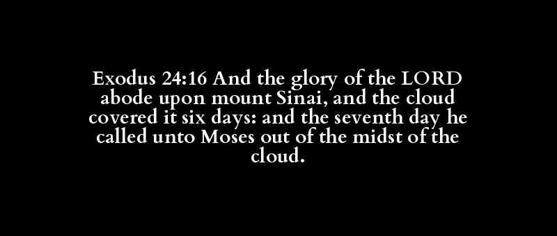 Exodus 24:16 And the glory of the LORD abode upon mount Sinai, and the cloud covered it six days: and the seventh day he called unto Moses out of the midst of the cloud.