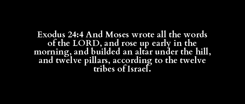Exodus 24:4 And Moses wrote all the words of the LORD, and rose up early in the morning, and builded an altar under the hill, and twelve pillars, according to the twelve tribes of Israel.