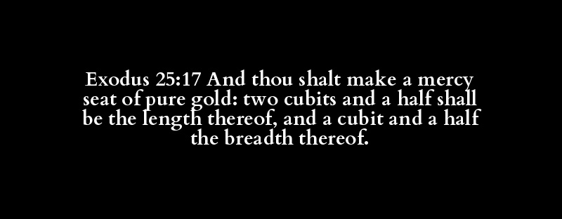 Exodus 25:17 And thou shalt make a mercy seat of pure gold: two cubits and a half shall be the length thereof, and a cubit and a half the breadth thereof.