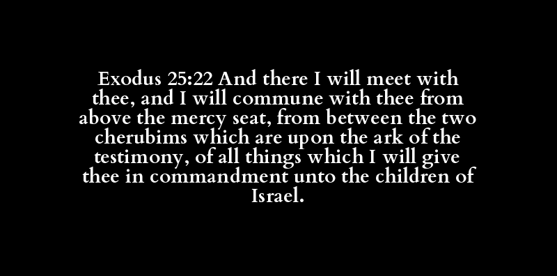 Exodus 25:22 And there I will meet with thee, and I will commune with thee from above the mercy seat, from between the two cherubims which are upon the ark of the testimony, of all things which I will give thee in commandment unto the children of Israel.