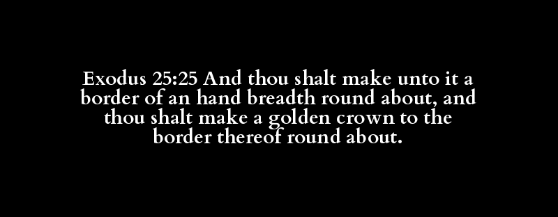 Exodus 25:25 And thou shalt make unto it a border of an hand breadth round about, and thou shalt make a golden crown to the border thereof round about.