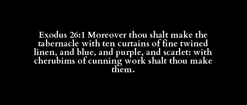 Exodus 26:1 Moreover thou shalt make the tabernacle with ten curtains of fine twined linen, and blue, and purple, and scarlet: with cherubims of cunning work shalt thou make them.