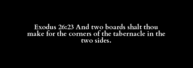 Exodus 26:23 And two boards shalt thou make for the corners of the tabernacle in the two sides.