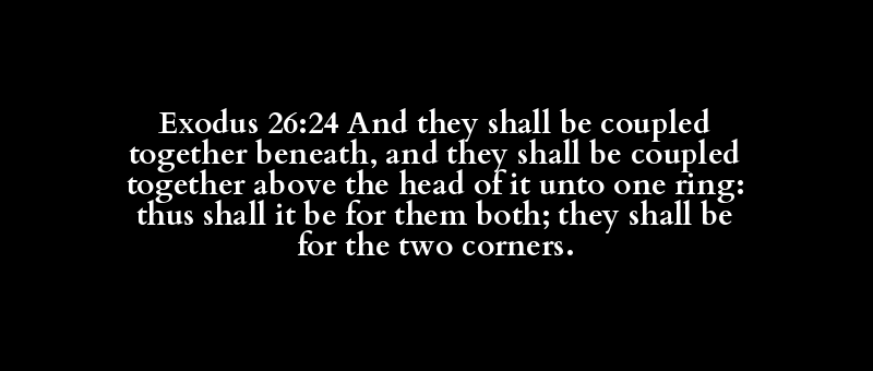 Exodus 26:24 And they shall be coupled together beneath, and they shall be coupled together above the head of it unto one ring: thus shall it be for them both; they shall be for the two corners.
