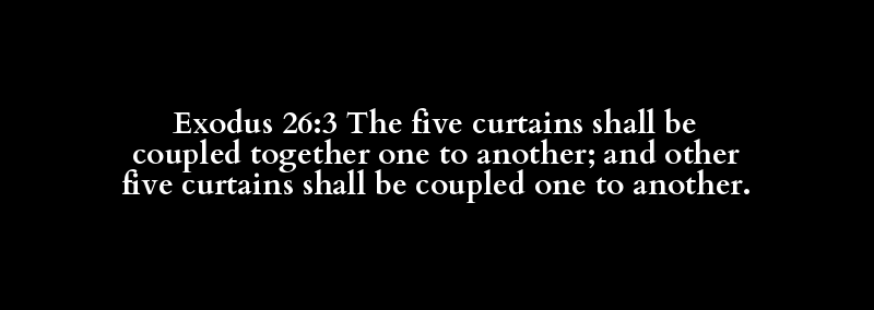 Exodus 26:3 The five curtains shall be coupled together one to another; and other five curtains shall be coupled one to another.