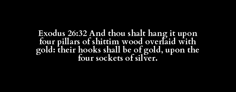 Exodus 26:32 And thou shalt hang it upon four pillars of shittim wood overlaid with gold: their hooks shall be of gold, upon the four sockets of silver.