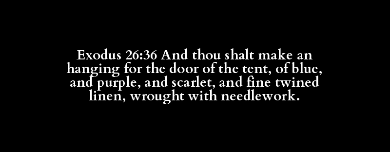 Exodus 26:36 And thou shalt make an hanging for the door of the tent, of blue, and purple, and scarlet, and fine twined linen, wrought with needlework.