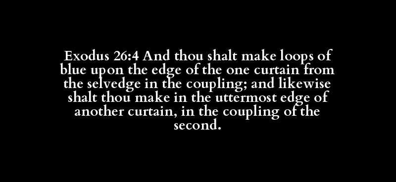 Exodus 26:4 And thou shalt make loops of blue upon the edge of the one curtain from the selvedge in the coupling; and likewise shalt thou make in the uttermost edge of another curtain, in the coupling of the second.