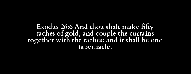 Exodus 26:6 And thou shalt make fifty taches of gold, and couple the curtains together with the taches: and it shall be one tabernacle.