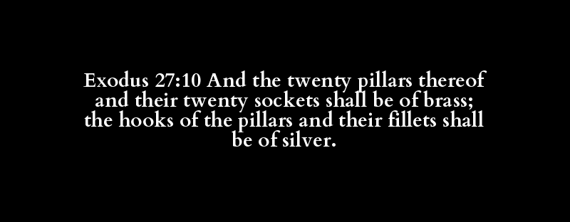 Exodus 27:10 And the twenty pillars thereof and their twenty sockets shall be of brass; the hooks of the pillars and their fillets shall be of silver.