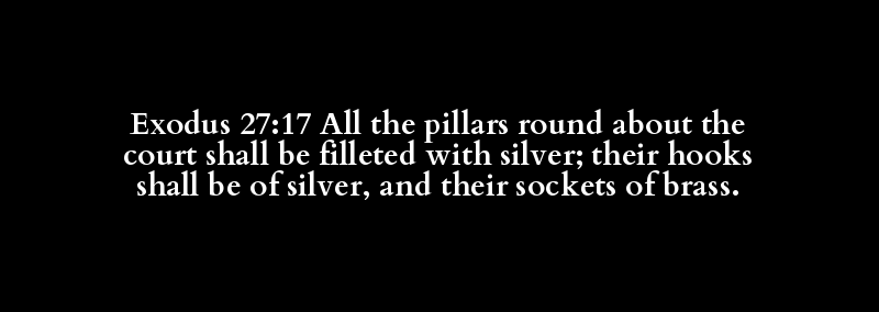 Exodus 27:17 All the pillars round about the court shall be filleted with silver; their hooks shall be of silver, and their sockets of brass.