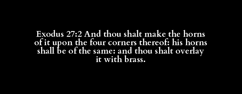 Exodus 27:2 And thou shalt make the horns of it upon the four corners thereof: his horns shall be of the same: and thou shalt overlay it with brass.