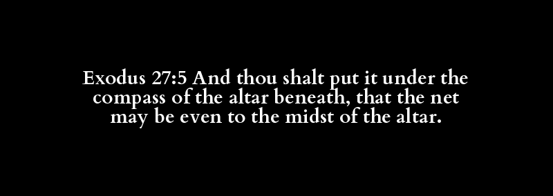 Exodus 27:5 And thou shalt put it under the compass of the altar beneath, that the net may be even to the midst of the altar.