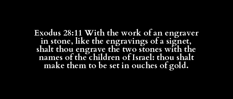 Exodus 28:11 With the work of an engraver in stone, like the engravings of a signet, shalt thou engrave the two stones with the names of the children of Israel: thou shalt make them to be set in ouches of gold.