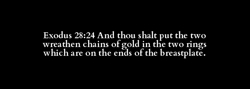 Exodus 28:24 And thou shalt put the two wreathen chains of gold in the two rings which are on the ends of the breastplate.